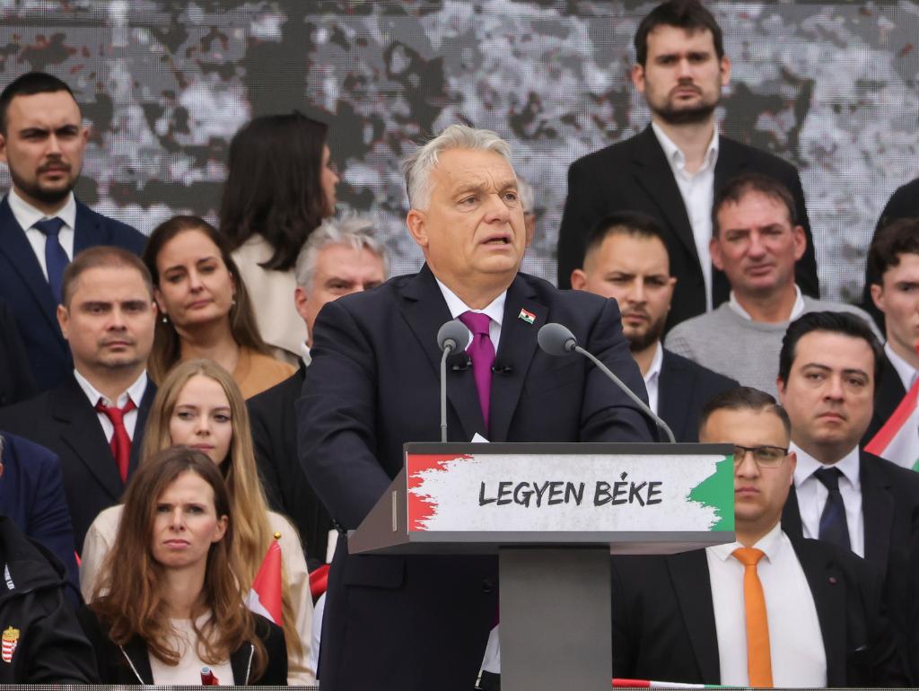 ??10月23日,匈牙利總理歐爾班在首都布達佩斯舉行的一場集會上講話。新華社發(fā)(弗爾季·奧蒂洛攝)